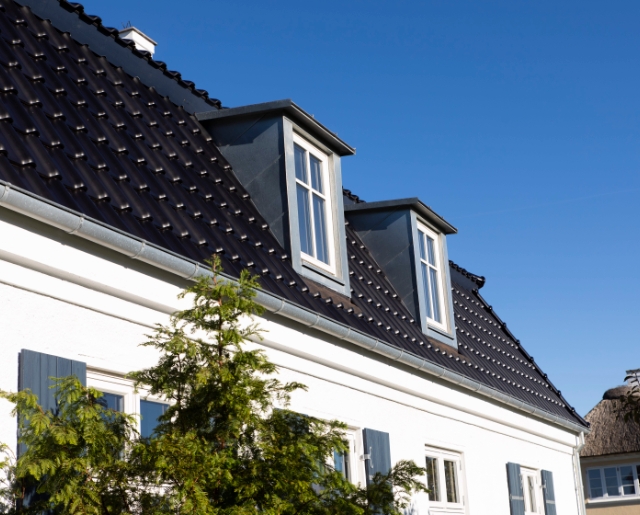 Deze tijdloos moderne vlakke dakpan TIEFA XL TOP® wordt gekenmerkt door zijn zachte welving en harmonisch rustige, duidelijk gestructureerde oppervlakte-effect. Het flexibele middenformaat van de populaire TIEFA XL TOP® is bovendien bijzonder economisch en universeel toepasbaar - en niet alleen voor platte hellende daken.