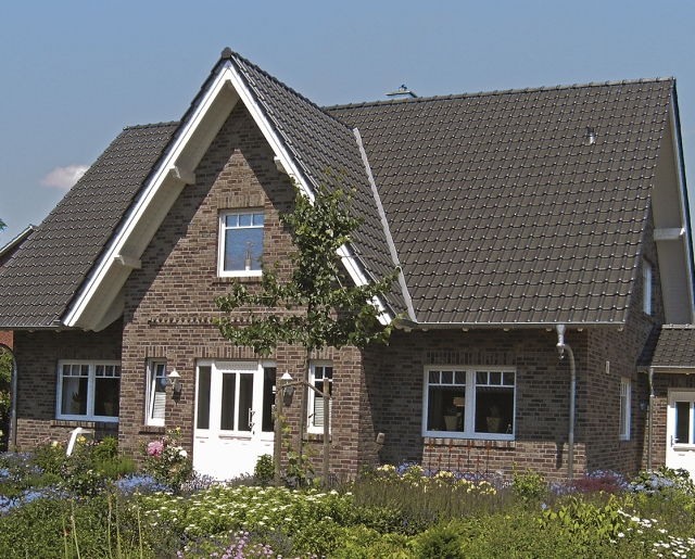 Deze tijdloos moderne vlakke dakpan TIEFA XL TOP® wordt gekenmerkt door zijn zachte welving en harmonisch rustige, duidelijk gestructureerde oppervlakte-effect. Het flexibele middenformaat van de populaire TIEFA XL TOP® is bovendien bijzonder economisch en universeel toepasbaar - en niet alleen voor platte hellende daken.