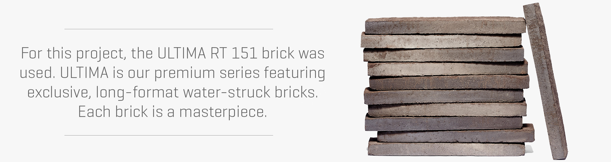 The Ultima format is the most exclusive series of bricks we have ever produced. This series features unique waterstruck bricks with intricate details and exciting color variations. All bricks in the series undergo an extensive manufacturing process to achieve their final expression. Their unique surface texture results in a distinctive, dynamic facade that is rich in variations.