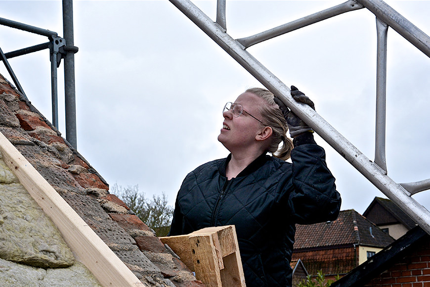 Efter en grundig forberedelsesfase valgte Anne og Simon, at det nye tag skulle være et tegltag.