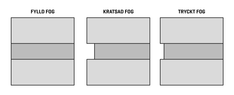 Nedan ses de mest använda tegelförbanden i Sverige. Det finns mer än 40 olika förbandstyper att välja mellan, där komplexhöjd, komplexbredd och rapport har definierats.