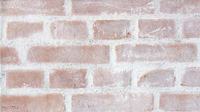 Murbruket påförs så tunt som möjligt med spackel. Ytan bearbetas med en fuktig borste i diagonala rörelser. Efter behandlingen är ytan jämn och täckt med ett tunt lager murbruk med spår från borsten.